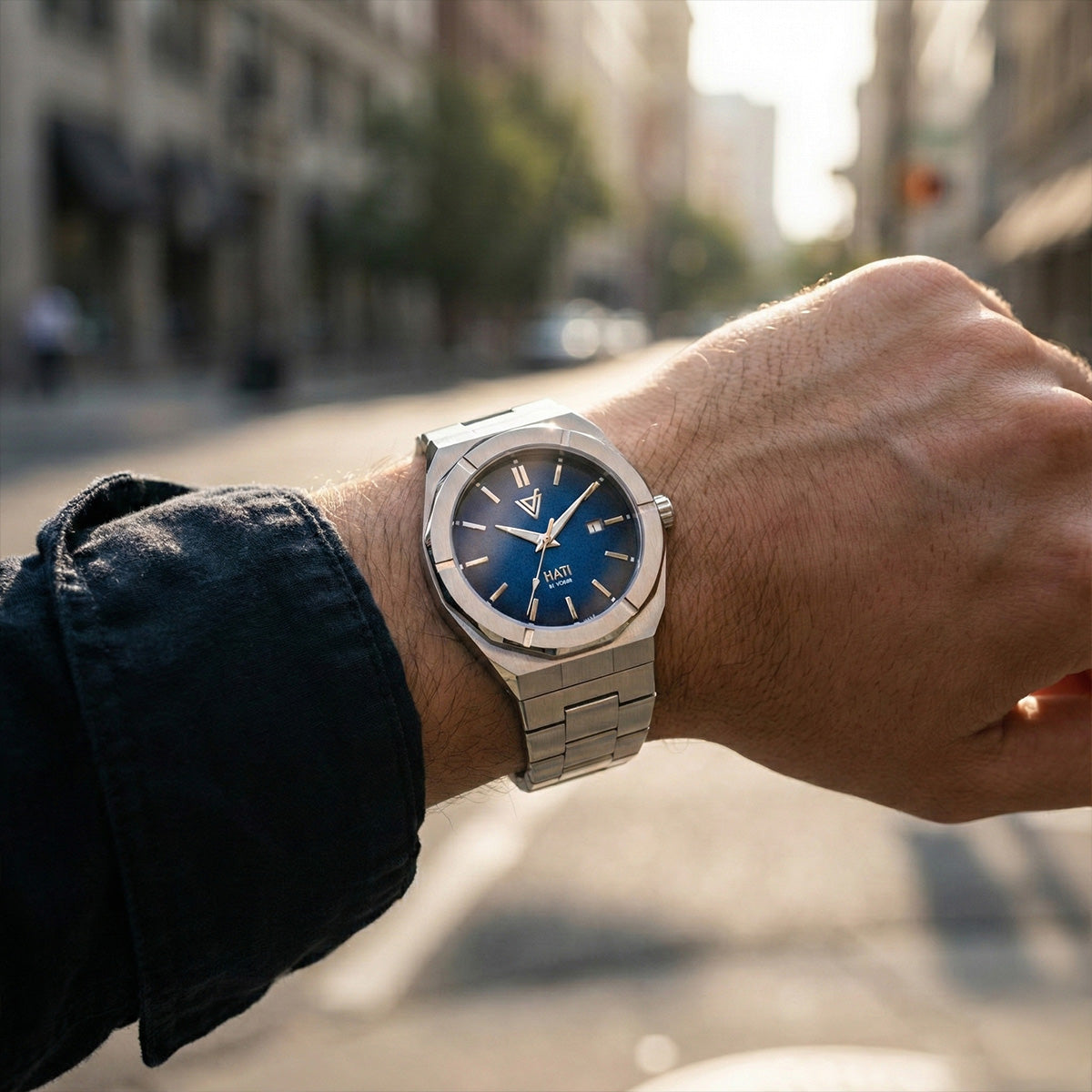 Hati redefine la versatilidad; es tan natural con un traje formal en la oficina como con tu ropa de fin de semana. No compite por atención, la gana sin esfuerzo. Es el compañero fiable que mantiene tu ritmo. Es esa piezas que, sin darte cuenta, te descubres buscando antes de salir. Cuando lo notas, ya forma parte de ti.