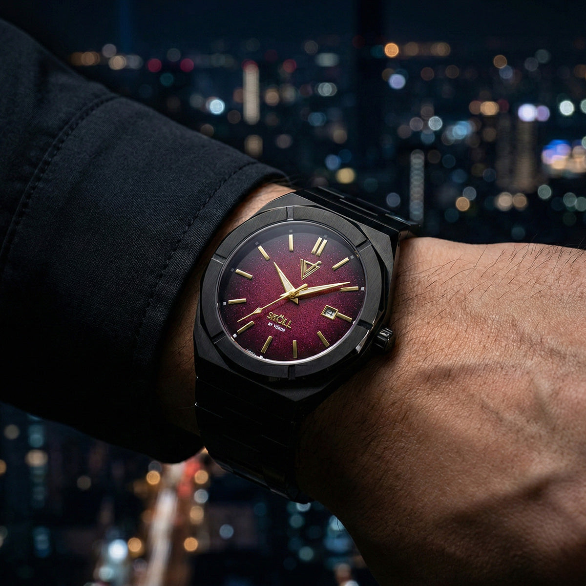 Sköll redefine lo atrevido. Es la elección del que rompe el molde, es la pieza que eleva un traje de noche o le da un toque distintivo a tu estilo casual. No es un reloj para pasar desapercibido; es un compañero fiable que te impulsa a la acción. Cuando lo llevas, no solo persigues el tiempo, lo defines.